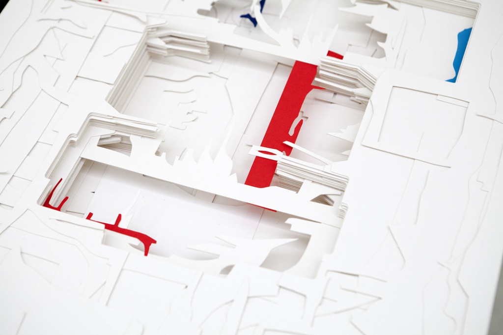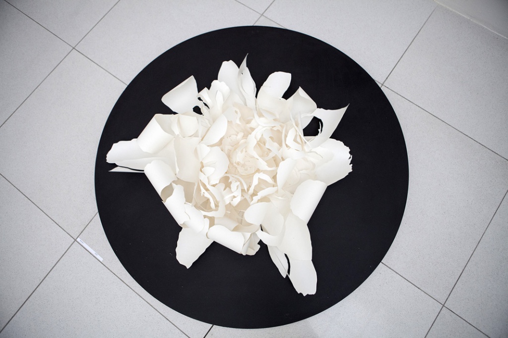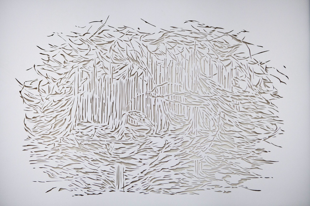 Current exhibition of artist Petra Novaková – Ondreičková focuse on the Universe as a main theme. She uses her own authorial technique, which calls itself a ‘drawing with knife’, when the image is formed by perforated paper and layering. Topic Universe takes in its ambiguity. Visuality of her ‘drawings with knife’ moves to an abstract level, recovered principles of space available in the material. In the meaning of the Universe she is not interested in cosmological questions, she doesn't understand the Universe as the totality of everything, something that claim to absoluteness, but the Universe she means as her own mental space. Although materia cosmological science defines the philosophical and physical form, but she works with it artistical way and therefore free. Part of the author's approach to work as a statement is that she recycles and re-creates their own works of art using the older artifacts, resulting it in a three-dimensional wall object or image. Its current work builds on previous cycles: Loneliness in the crowd, Habitats, Horizons, Genius Loci, Erosion, Civilization.
