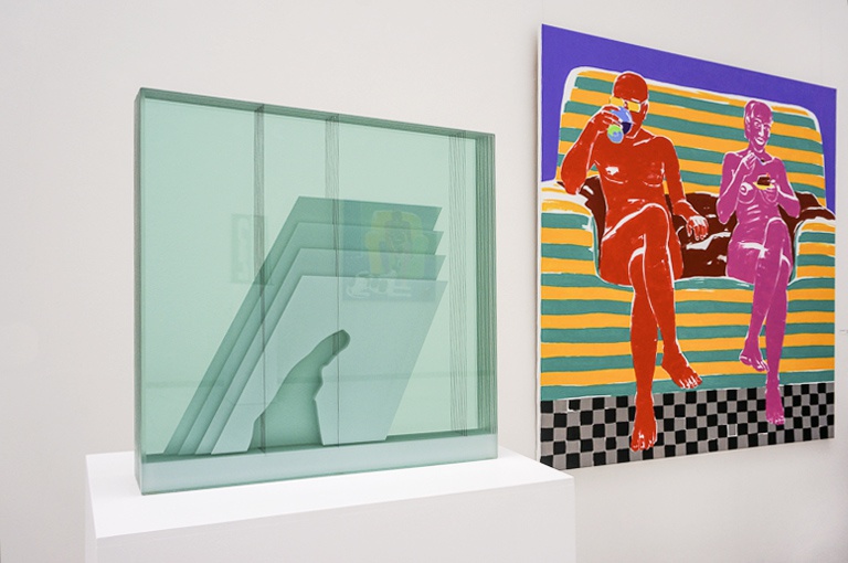 Čisté tvary skla a výrazné barvy na plátnech vytváří zajímavý celek, který vede autory k uspořádání společné výstavy.