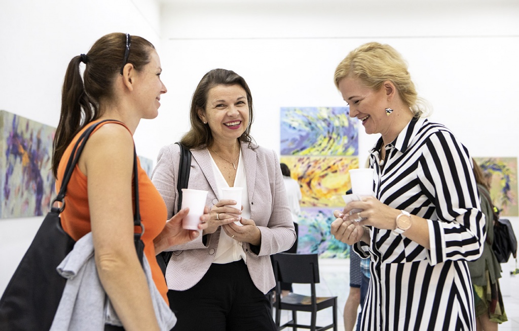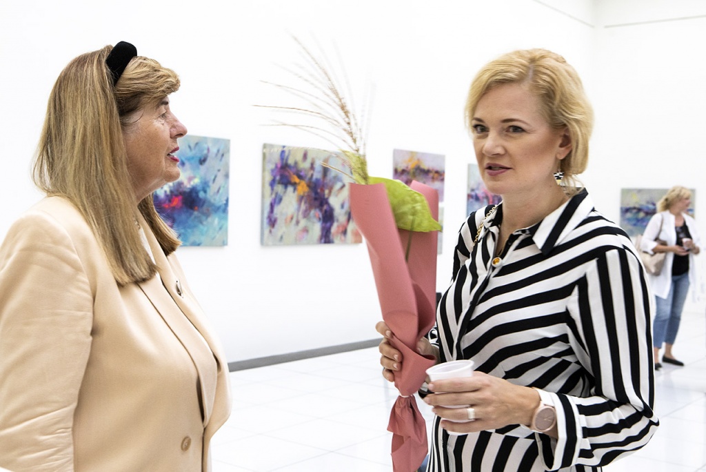 V současné sérii vesmírných vizí navazuje autorka na svůj první rozsáhlý cyklus z doby před více než patnácti lety, který vytvářela za pomoci jemné šrafury barevných pastelů na černém kartonu. Návaznost je však pouze motivická a částečně ve využití gesta. To se v aktuální malbě objevuje fragmentárně jako základ kompoziční struktury (ve stopách širokého štětce) a malířka svou novou bázi využívá opět k rozehrání chromatických féerií jako v předchozích námětech. Zmizela však dualita kompozice; tmavé fragmenty zde zdánlivě plují v mělkém světlejším prostoru a stávají se jakýmsi emblematickými symboly. I v těchto víceméně abstrahovaných kompozicích najdeme zápal pro koloristickou harmonii, což se umělkyni daří naplňovat beze zbytku.